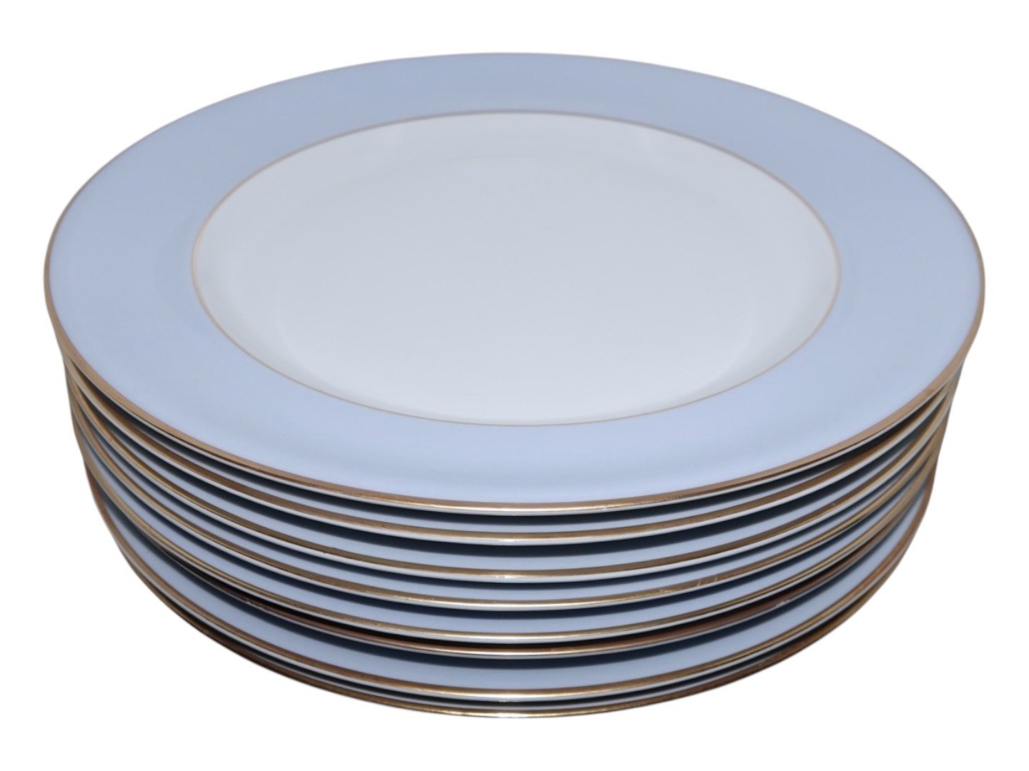 Royal Copenhagen Lyseblå med guldkant, dækketallerken eller ekstra stor middagstallerken. Dekorationsnummer 631. 1. sortering. Diameter 31,5 cm. Perfekt stand.