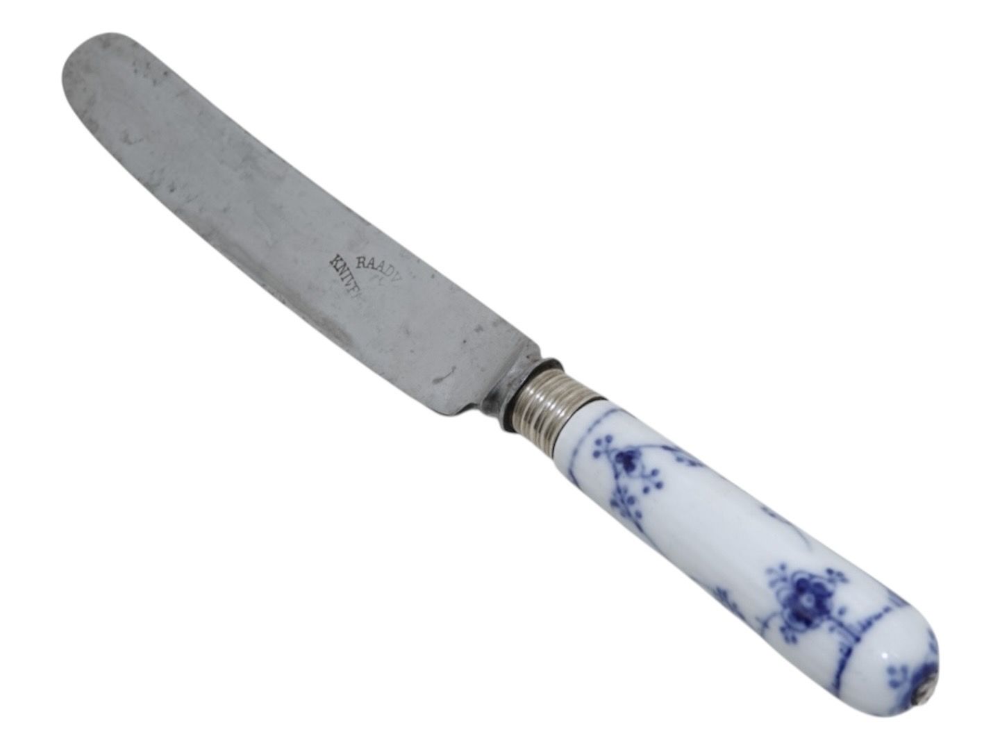 Royal Copenhagen Musselmalet Riflet, frokostkniv med originalt Raadvad knivblad.