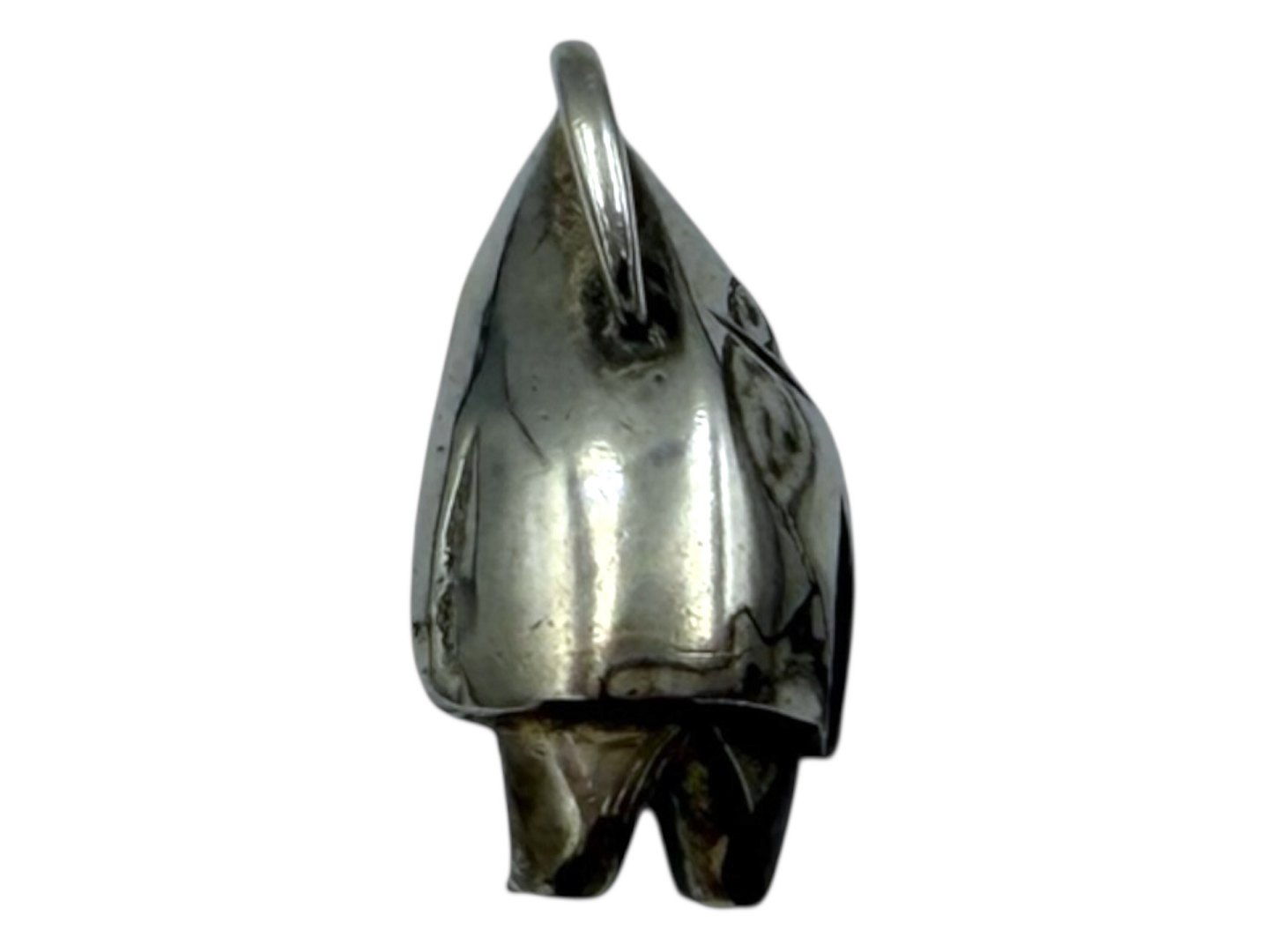 Tage Hansens Guldsmedie, kraftigt sterlingsølv vedhæng af grønlænder. Stemplet “JTH 925S". Jens Tage Hansen startede som sølvsmed i 1954 og virksomheden forsatte til 2008. Vedhænget måler 3,0 x 1,8 cm. Fin og velholdt stand.