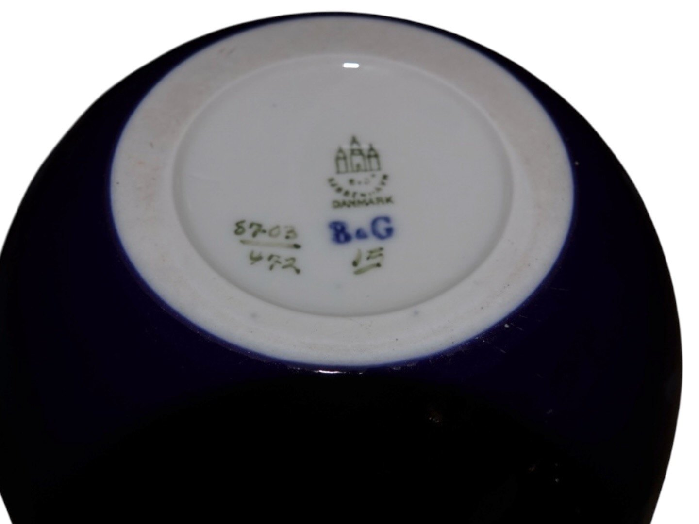 Dekorationsnummer 8703/42 og den ene har kunstersignatur MS for Marie Smith. Vaserne har samme dekorationsnummer men de er ikke malet 100% ens.
