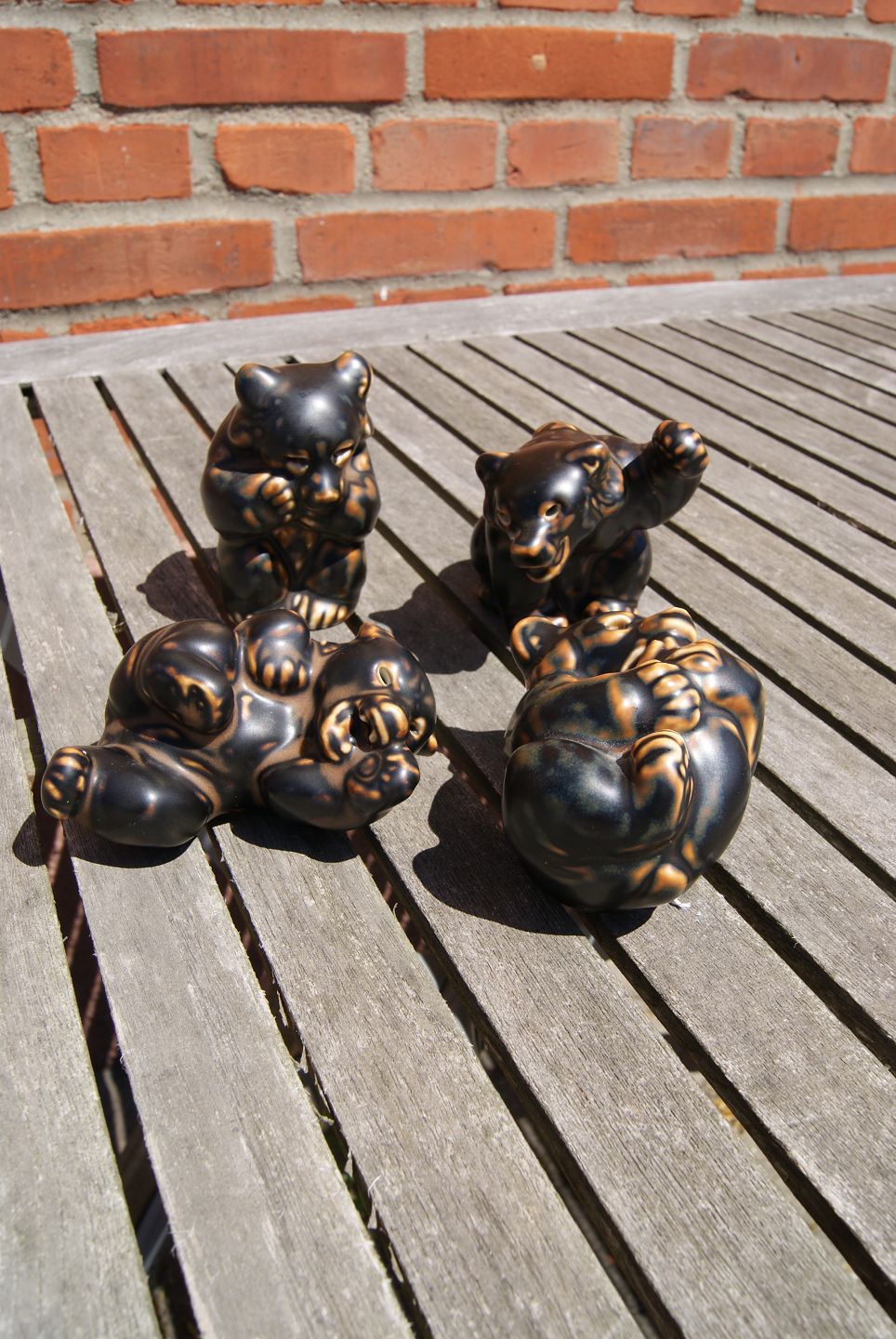 Royal Copenhagen Dänemark Steingut Figur Nr. 21433, sitzend Bär mit erhobener links Tatze