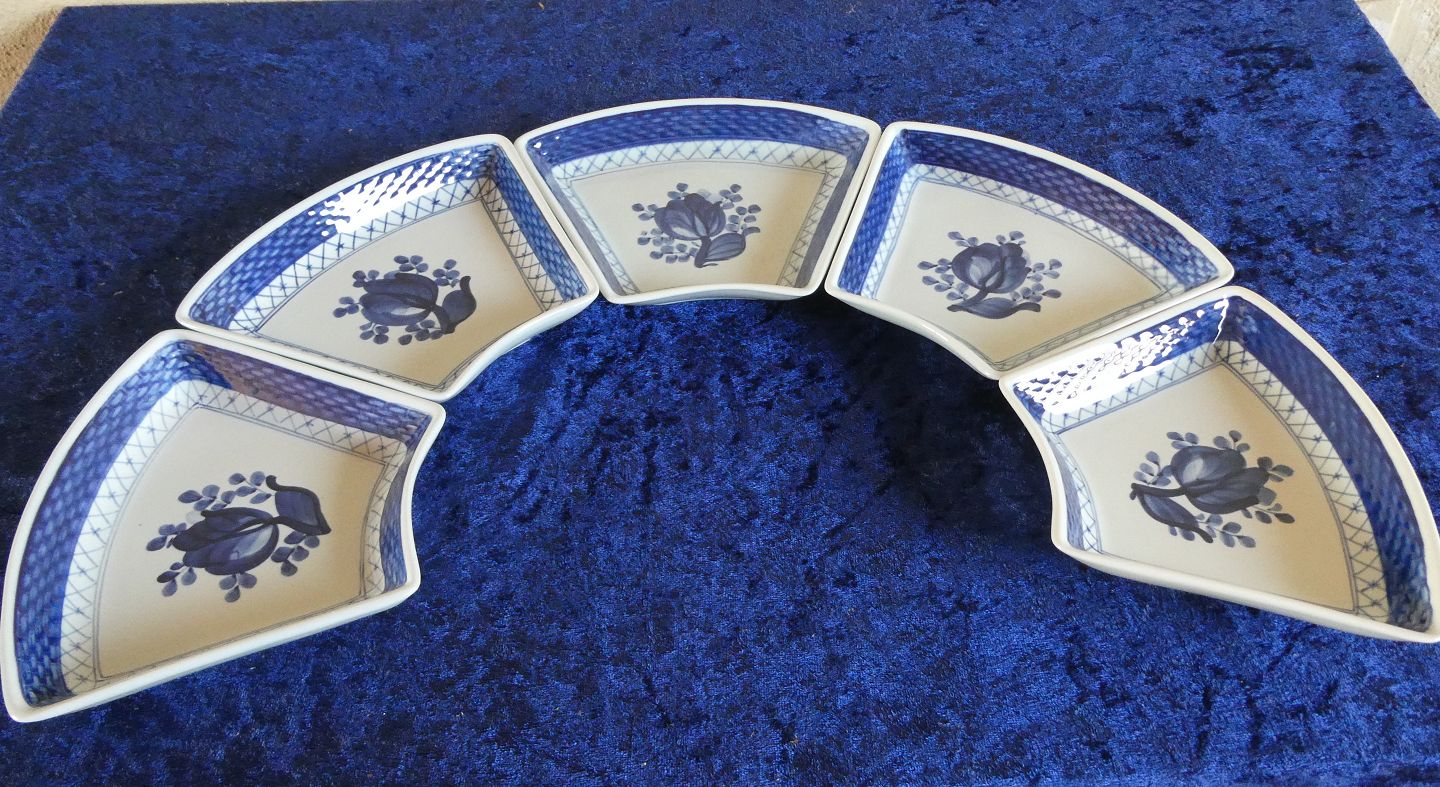 Set mit 5 Schalen Nr. 1195 für die halbmondförmige Cabaret latte von Aluminia, in gutem, gebrauchtem Zustand.