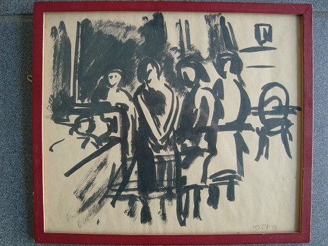 Tuschtegning af Georg Tscherning-Petersen 1946 - "Dødsleje"