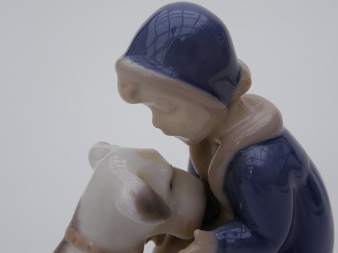 B&G 2163 Pige med hund af Claire Weiss, h: 10,5cm. l:11,5cm.