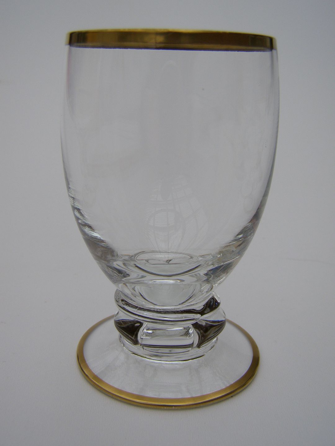 Vandglas Gisselfeldt med guldkant, h:9,5cm.