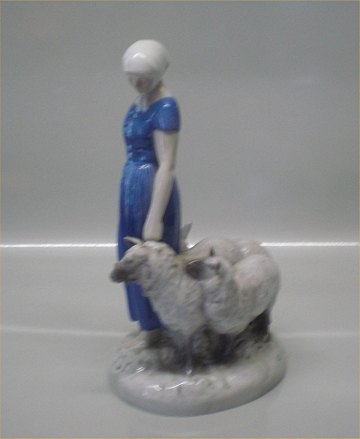 Bing & Grøndahl B&G 2010 Hyrdinde med får Design Axel Locher 26 cm 2. sortering I fin og hel stand.