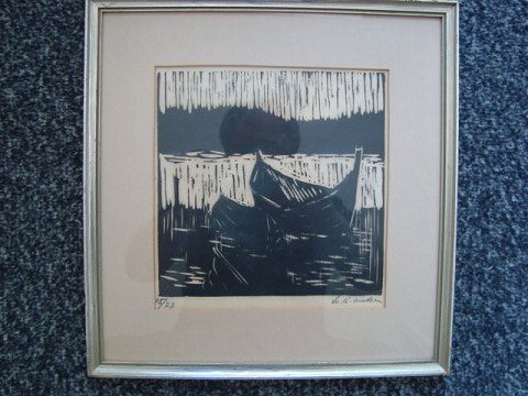 Træsnit af Svend Åge Madsen "Både"