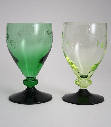 Hvidvin med grøn kumme, højde 10,3 cm. Pris: 75 kr. stk. Lager: 12+