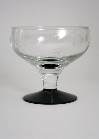 Holmegaard glasværk, Ranke, sort stilk og fod, slebet bladranke om kummen. Produceret fra 1942.