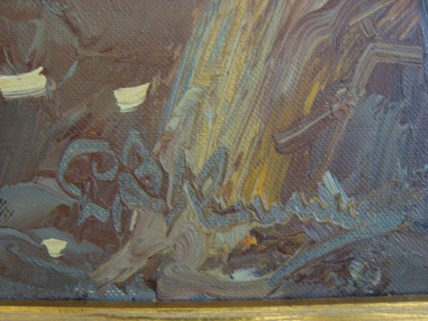 Maleri Gustav P. Rimmer - Gårdsplads med høns.