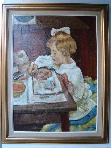 Maleri af Chr. Faber - Pige der maler med vandfarver.