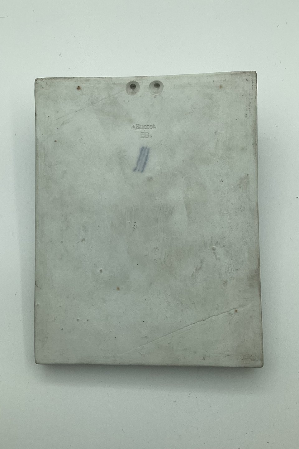 Royal Copenhagen Bisquit Platte Thorvaldsens Kristi Dåb (113). Platten måler 16 cm x 12 cm og kopier er udført af O.H.B. Olrik i 1848. Denne platte er fra tiden omkring 1850 og er i hel of fin stand.