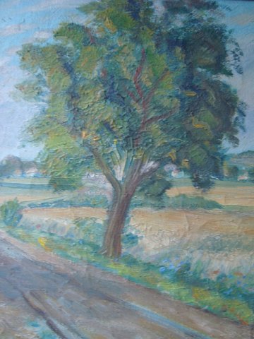 Maleri - Vej gennem landskab - i smukke lyse farver 1945.