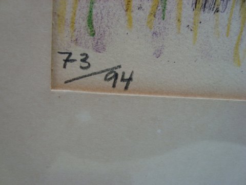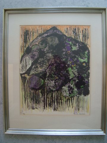 Smukt litografi af Grete Balle - Typisk abstraktion.