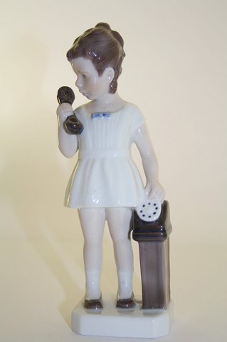 Lyngby, Porcelænsfabrikken Danmark. Gitte med telefon. Nr. 73. Højde 17 cm. Pris: 875 kr.
