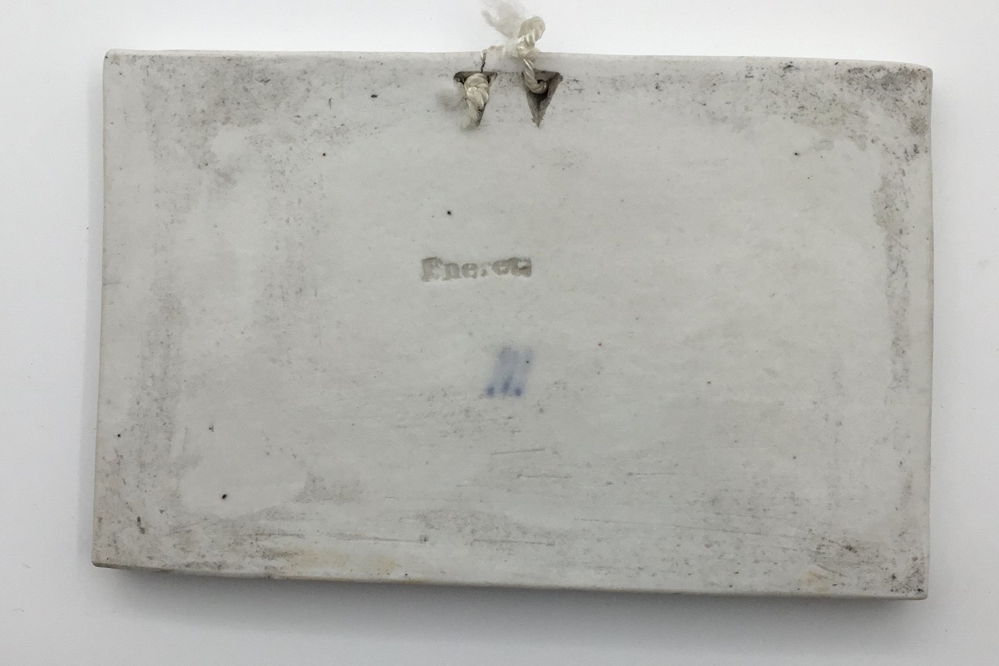 Royal Copenhagen Biscuit Platte Amor hos Bacchus 66. Kopi fra 1847 af Th. Mule efter Thorvaldsens original fra Rom efter 1910. Måler 15cm x 9cm. Har en del skår, som det kan ses af billedet. Fire skår på fire sider.