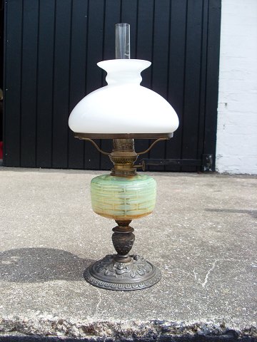 Flot petroliums lampe med opaline skærm,