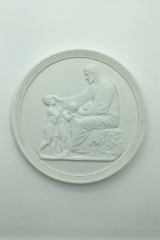 Royal Copenhagen Bisque Plate Christ blesses the children No 112. Copy by Chr. Christensen in 1845. After Thorvaldsen relief from 1805-1807 Measures 13,5cm (5.31 inch)