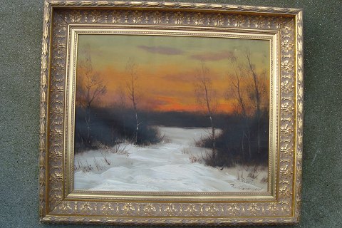 Maleri af Finn Dannerfjord - Vinterparti med solnedgang.