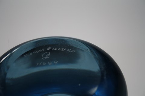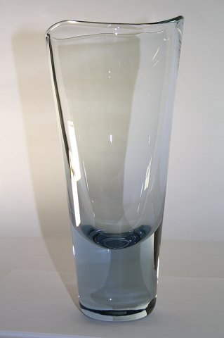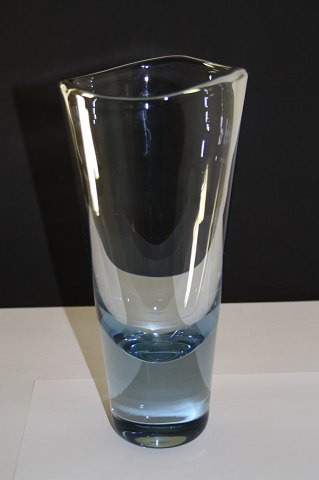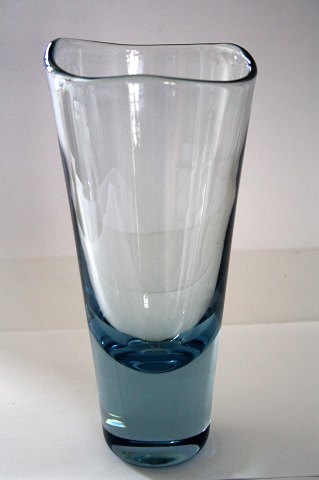 Konisk vase med bølget rand, Holmegaard glasværk 1960, kunstner Per Lütken mærket Holmegaard 11689. Højde 26 cm. Største diameter 12 cm. Vægt 1650g. Enkelte ridser. Pris: 475 kr.
