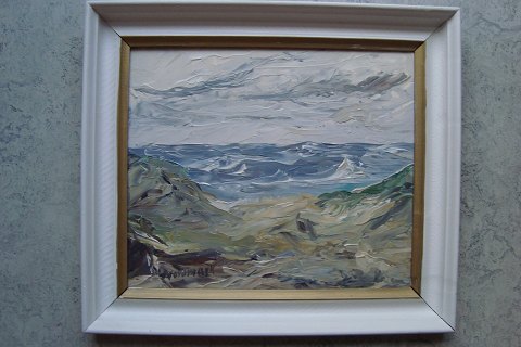 Maleri af ubekendt kunstner - Klitparti med Vesterhavet i baggrunden.