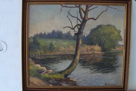 Maleri af Oluf Søndergaard - Landskab med å.