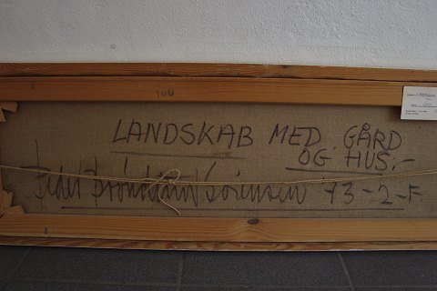 Bagpå betegnet - Landskab med gård og hus.