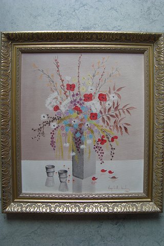Maleri af Hugo Møller Knudsen - Opstilling med blomster i vase.