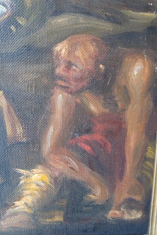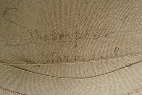 Motiv fra komedien "Stormen" (The Tempest 1610-11) af William Shakespeare (1565-1616). Personerne er Prospero, fyrste af Milano og datteren Miranda, der er strandet på en ø, hvor de finder monsteret "Caliban" som de gør til deres slave.