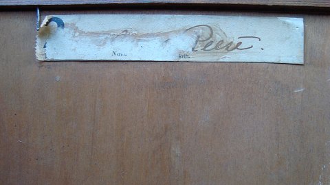 Bagpå udstillingsmærkat fra Kunstnernes Efterårsudstilling no. 2 "Både i Skagen Havn" - Marx Reese.