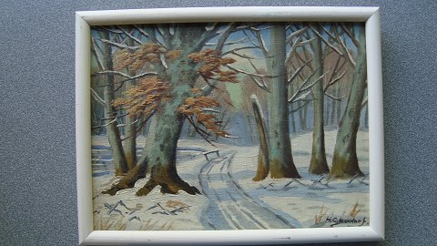 Maleri af H.O. Bendorf - Vinterparti fra Dyrehaven.