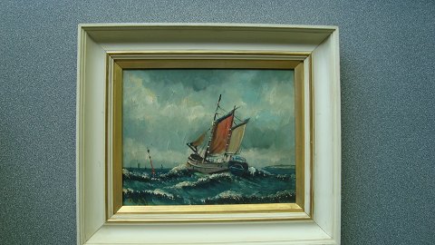 Maleri af Aksel Møller - Sejlskib på havet.
