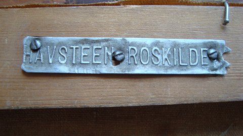 Bagpå blindramme metalskilt "Havsteen Roskilde" (måske proveniens til jægermester Th. Havsteen (død 1916), der ejede Maglegaard i Roskilde omkring århundredeskiftet).