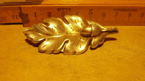 Vintage broche med egeblad og agern i sølv