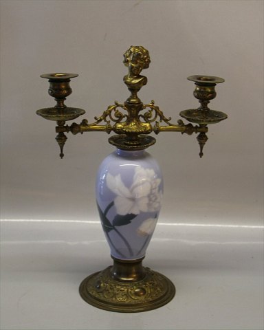 Kgl. To-armet lysestage - messing monteret på Kgl. Vase 32 cm høj