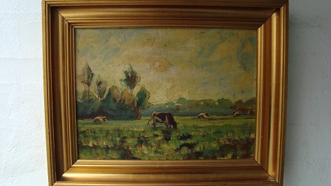 Maleri af Knud Petersen-Svendsberg - Køer på eng 1927.