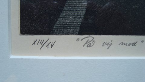 Ætsning af Poul Janus Ipsen - "På vej mod" 1974.