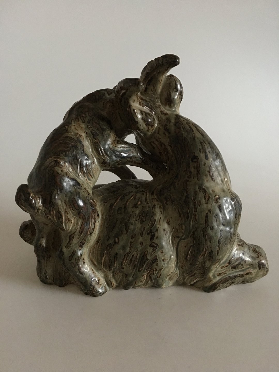Royal Copenhagen Stentøjsfigur af Vædder med kid af Knud Kyhn No 21642. Måler 24cm x 30cm og er i god stand.