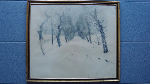 Kul tegning af Anders Hune 1925 - Allé ved vintertide.