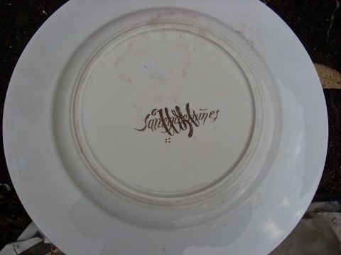 Håndmalet fransk fajance tallerken fra Sarregumines, produceret i starten af 1900tallet.