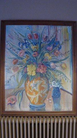Opstilling med 2 blomstervaser - stor smuk vase med forårsblomster samt lille vase med vintergækker 1942.