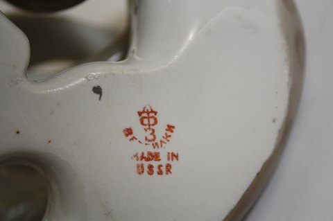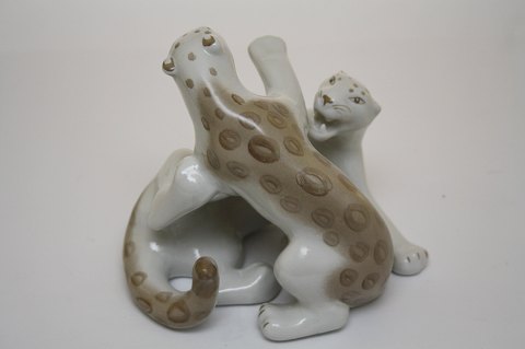 Russisk figur, legende sneleoparder. Længde 16 cm. Højde 15,5 cm. Pris: 675 kr.