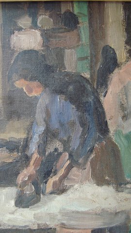 Olie på lærred påsat plade.