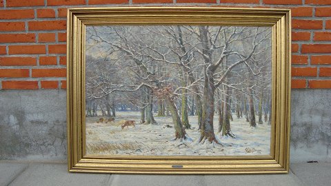 Maleri af Hans Gyde-Petersen - Vinterparti fra Dyrehaven 1939.