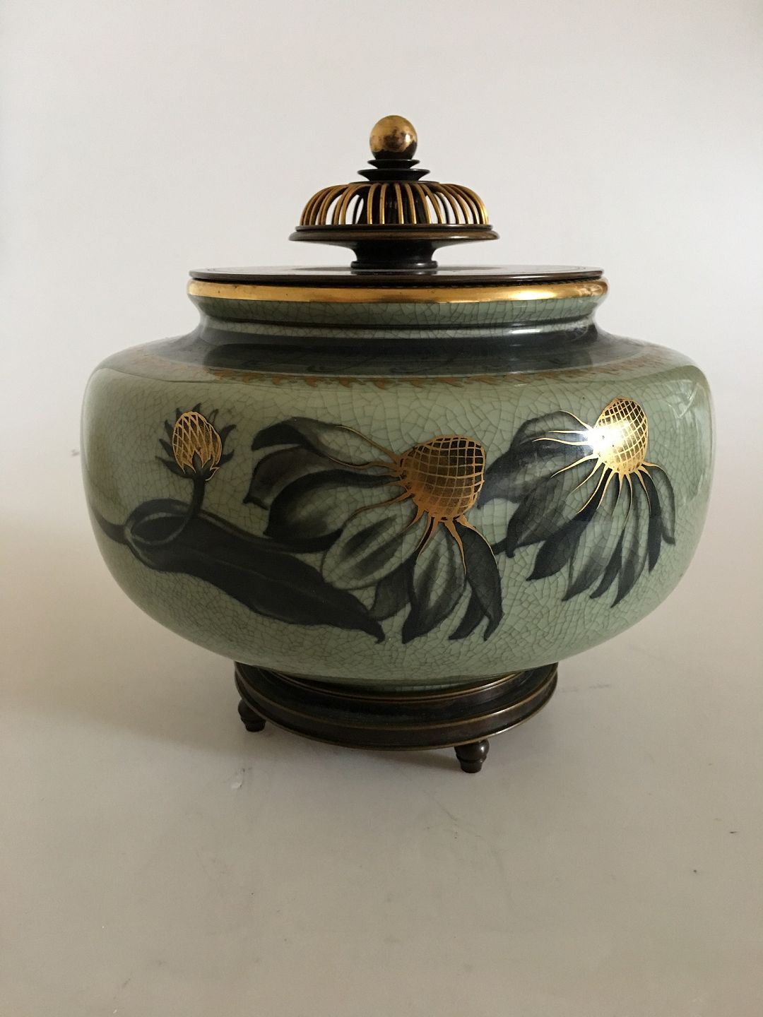 Royal Copenhagen Vase med Bronce Stand og låg af Knud Andersen