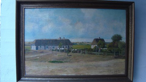 Landskab med gård og kvinde ved vasketøjssnor - August 1911.