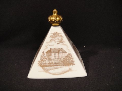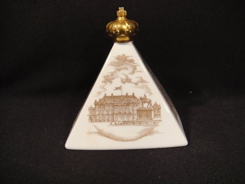 Bing & Grøndahl pyramide afsluttet med guldstafferet krone fra Chr. X's jubilæum 1912-1937