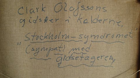 Bagpå lærred - "Clark Olofssons gidsler i kældrene" "Stockholm-syndromet" (sympati med gidseltageren).