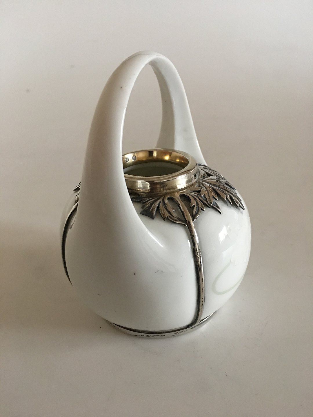 Royal Copenhagen Art Nouveau Vase with Anton Michelsen Sterling Silver Mounting from 1911