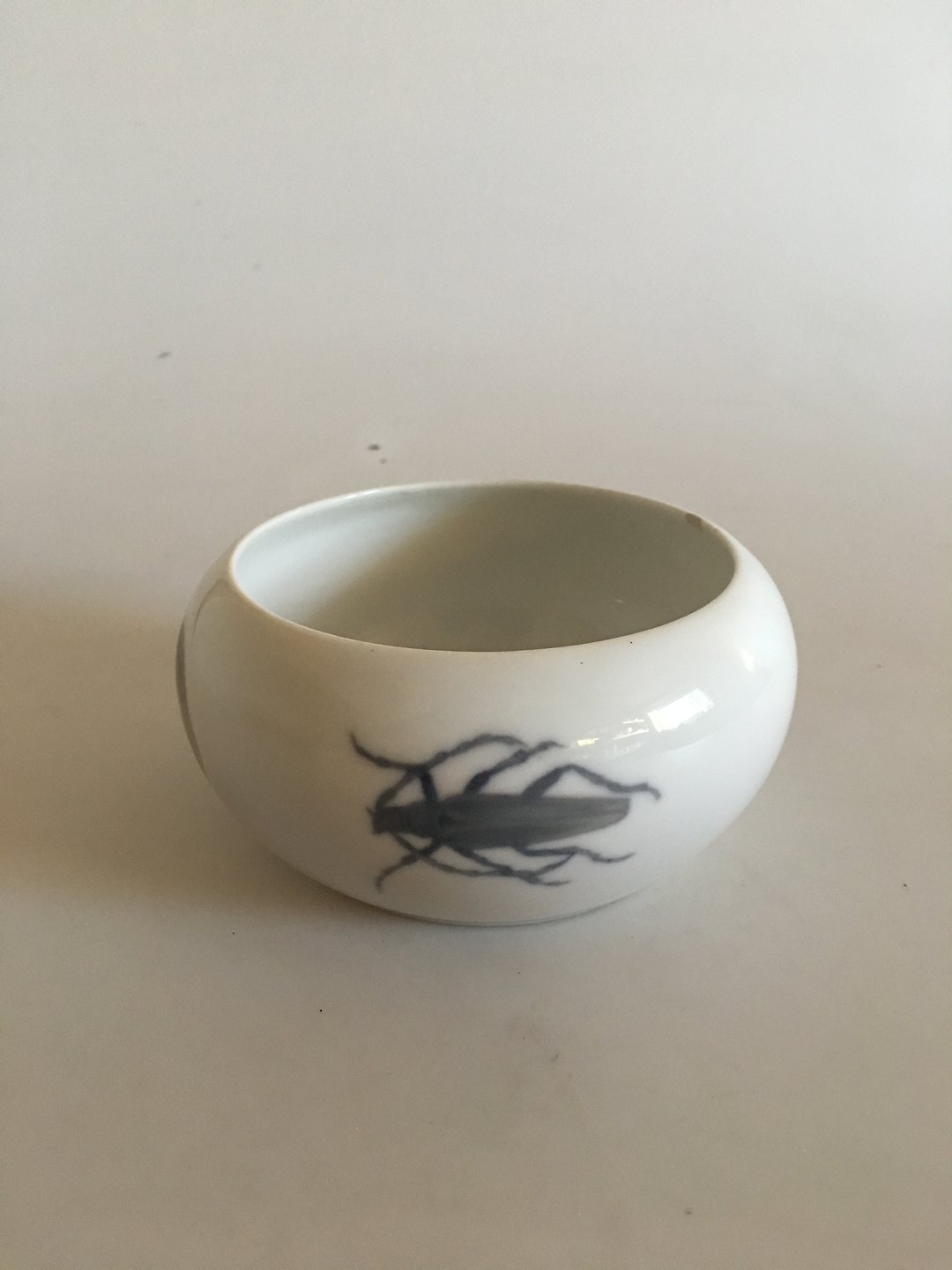 Royal Copenhagen Art Nouveau Skål med Bille og svampe No 1069/681. Måler 14cm x 7cm i god stand, men har en reperation på kantet, se billeder.